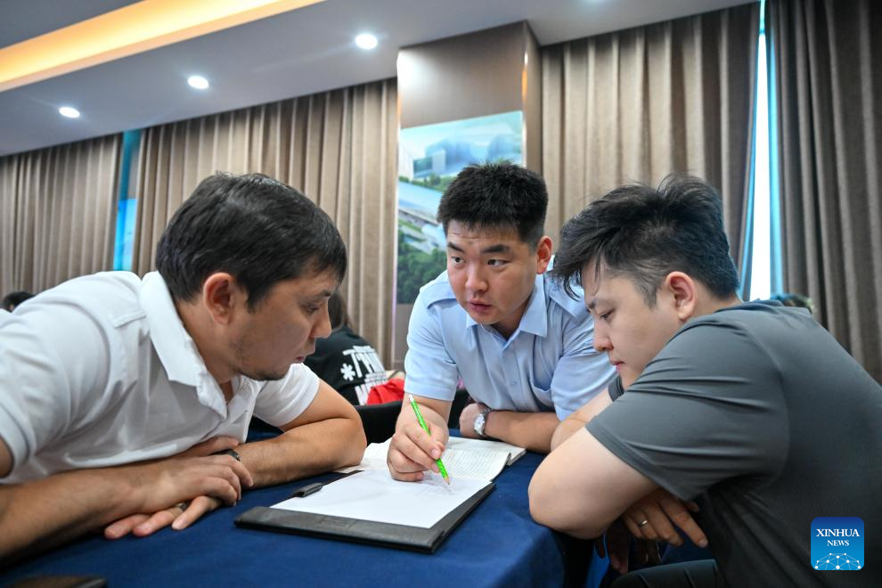 Kazakh trainees attend a light-rail driver training session in north China's Tianjin Municipality, July 14, 2025. A batch of 29 drivers from Kazakhstan have recently qualified as light-rail drivers after finishing immersive training sessions in China's Tianjin. (Xinhua/Sun Fanyue)