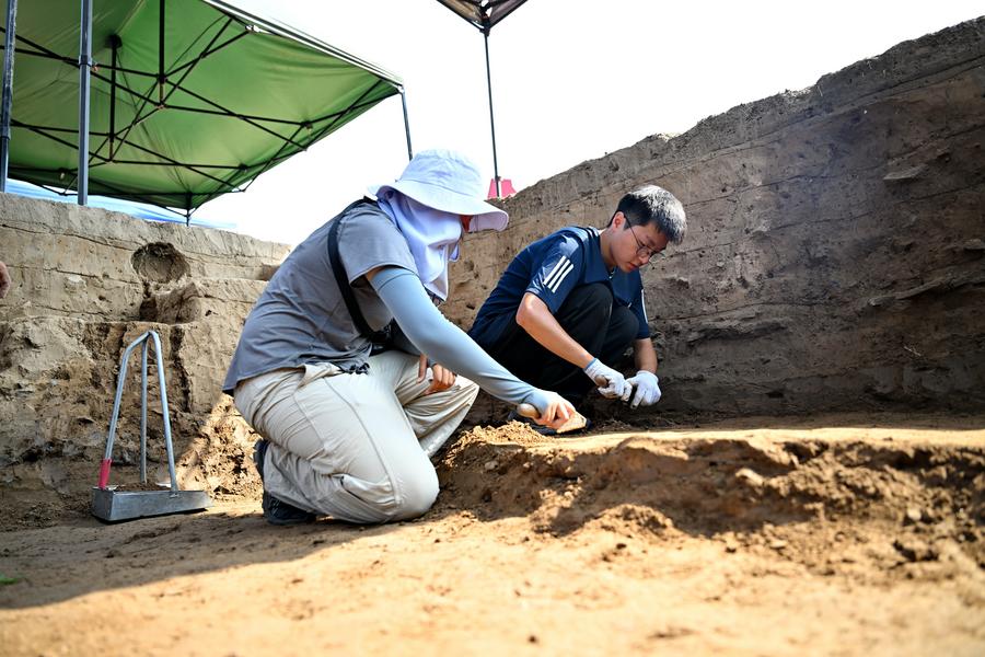 This photo taken on Sept. 10, 2025 shows scene during the sixth excavation of the Bairen Town site in Xingtai City, north China's Hebei Province. (Xinhua/Mu Yu)