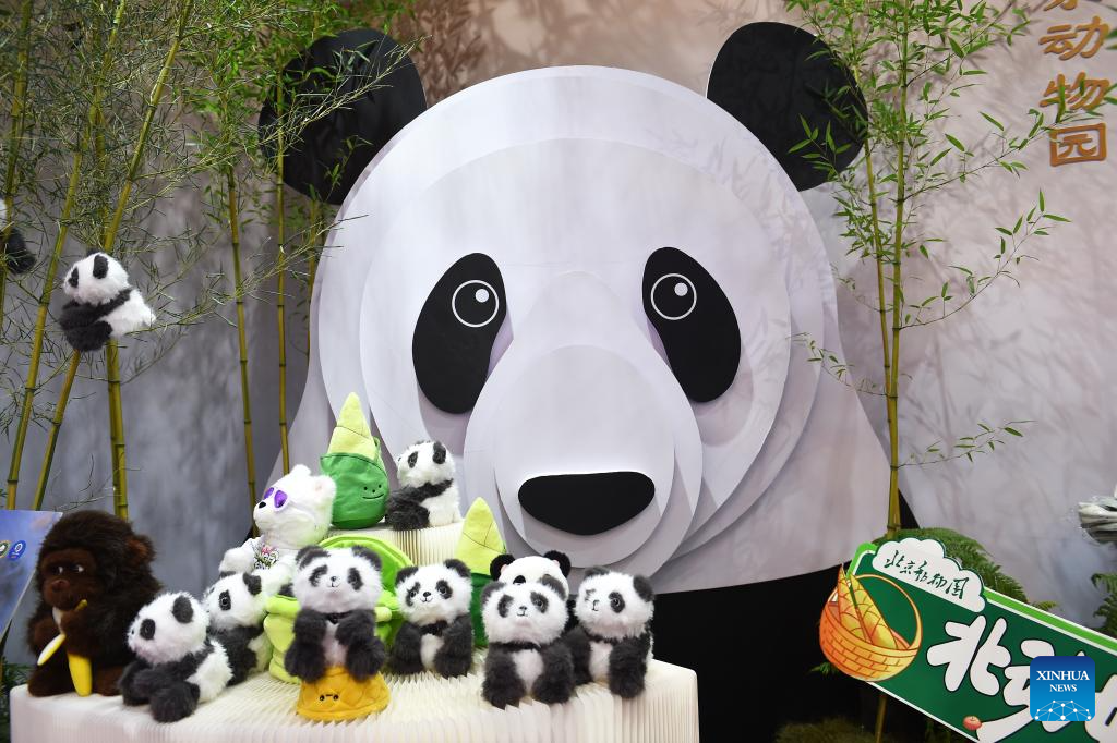 Panda-themed cultural and creative products are displayed at the 2025 China International Fair for Trade in Services (CIFTIS) in Beijing, capital of China, Sept. 11, 2025. The 2025 CIFTIS is held from Sept. 10 to 14 at the Shougang Park in Beijing. This year's fair features a wide range of cultural and creative products, which are highly popular among visitors. (Xinhua/Zhang Xinjing)
