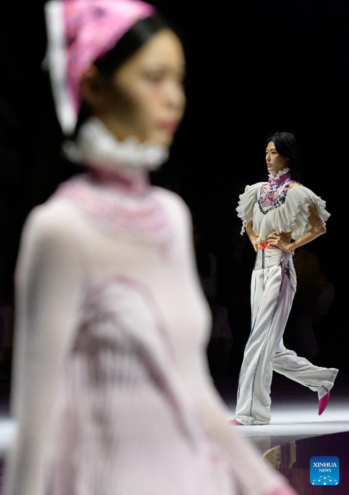 Models present creations at the closing show of the 2025 China Fashion Week (Autumn) in Beijing, capital of China, Sept. 14, 2025. (Xinhua/Hu Jingwen)