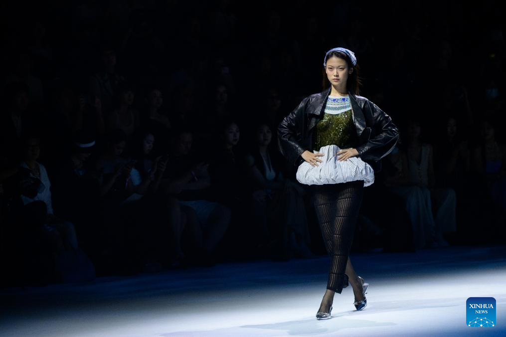 A model presents a creation at the closing show of the 2025 China Fashion Week (Autumn) in Beijing, capital of China, Sept. 14, 2025. (Xinhua/Hu Jingwen)
