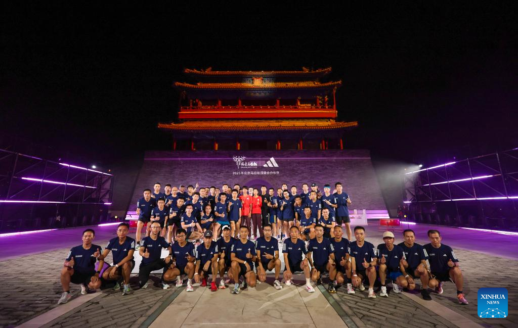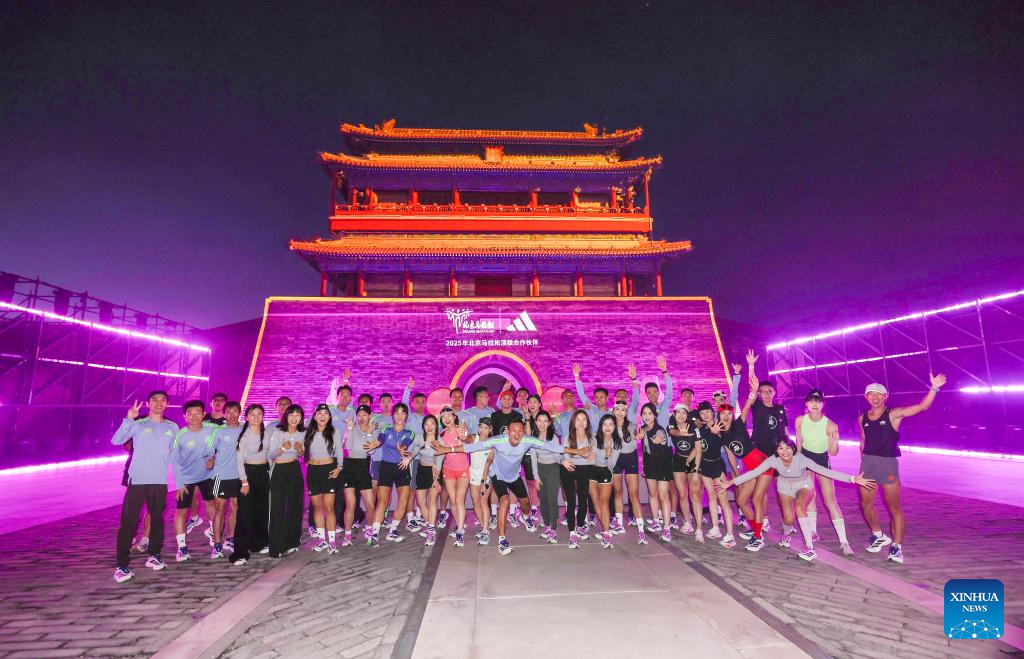 Runners pose for photos before the opening ceremony of Beijing Marathon Training Camp for the upcoming 2025 Beijing Marathon in Beijing, capital of China, Sept. 14, 2025. The 2025 Beijing Marathon will kick off on November 2. (Xinhua/Bai Xuefei)