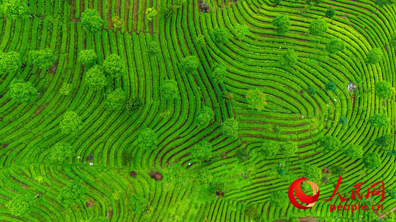 Aerial photo shows an ecological tea garden in Paliang village, Mengma town, Menglian Dai, Lahu and Wa Autonomous County, Pu'er city, southwest China's Yunnan Province. (People's Daily Online/Hu Zunhui)
