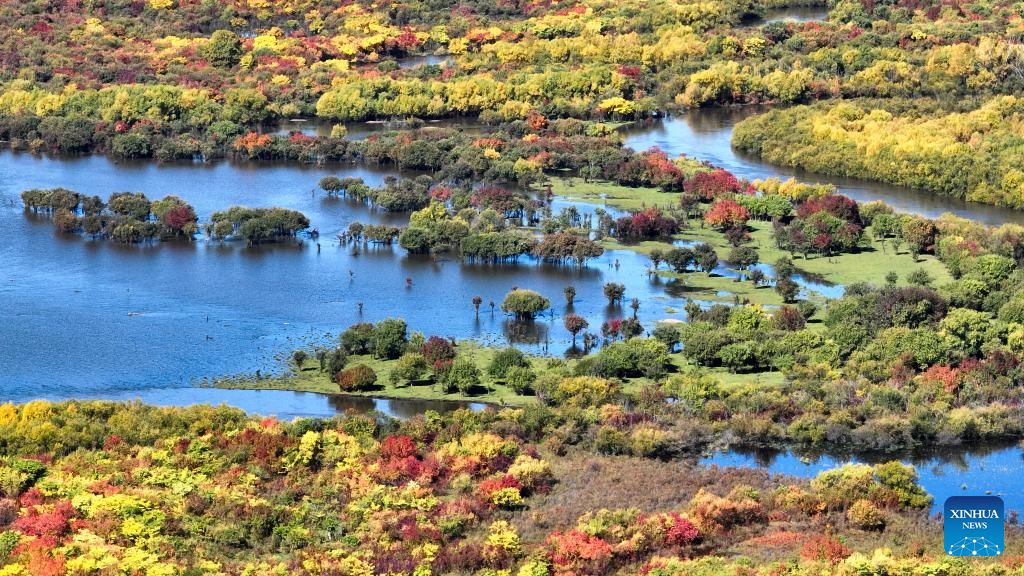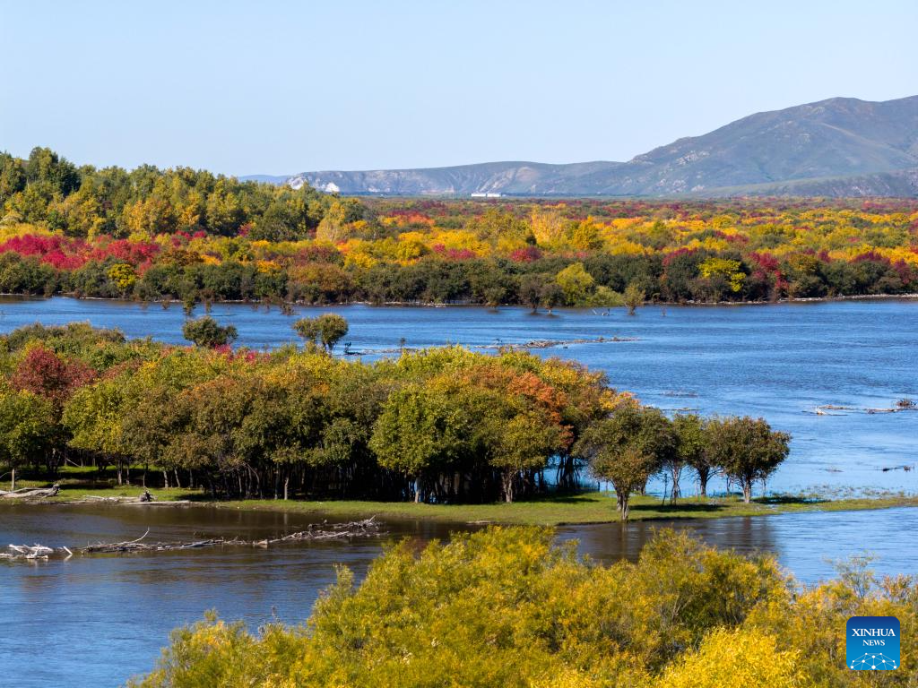 An aerial drone photo taken on Sept. 15, 2025 shows a view of the wetland around the Ergune River in Hulun Buir, north China's Inner Mongolia Autonomous Region. (Xinhua/Ma Jinrui)