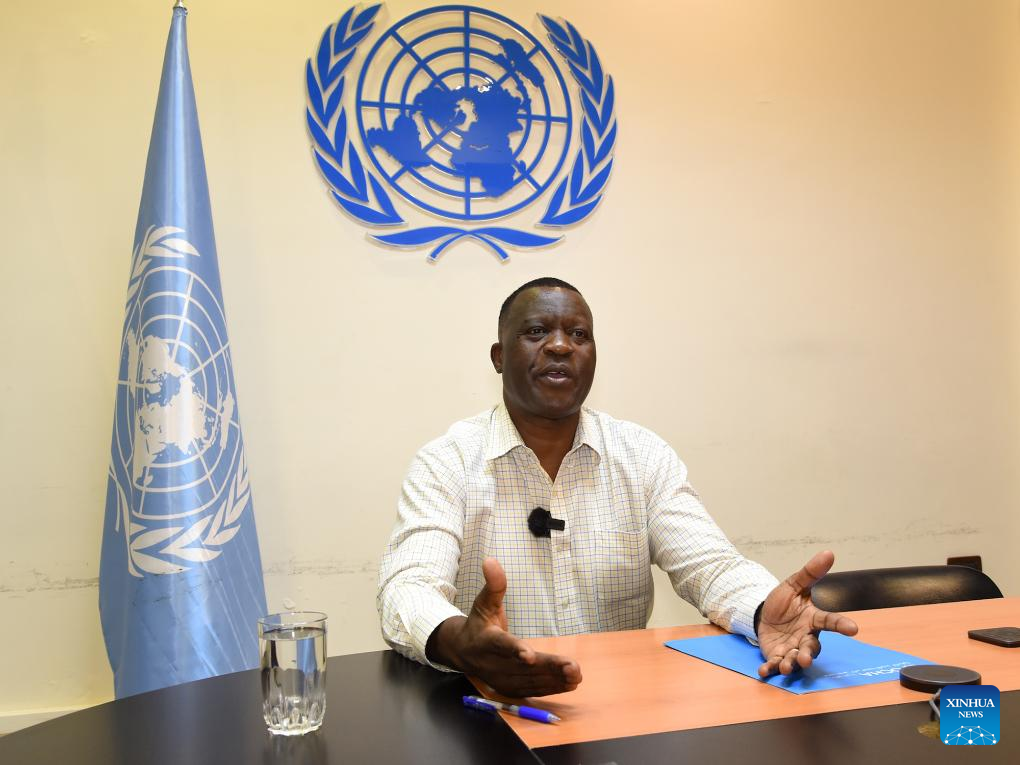 Joseph Inganji, head of the UN Office for the Coordination of Humanitarian Affairs (OCHA) in Syria, speaks during an interview with Xinhua in Damascus, Syria, Sept. 15, 2025. The OCHA in Syria has warned that millions of Syrians could face life-threatening conditions unless international donors step up funding for critical aid programs.(Photo by Monsef Memari/Xinhua)