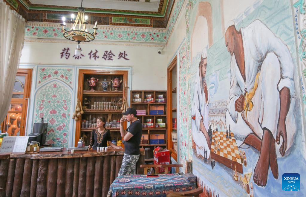 This photo shows a herbal tea house at the Kashgar Ancient City scenic spot, northwest China's Xinjiang Uygur Autonomous Region, Sept. 10, 2025. The ancient city of Kashgar, located in southwestern Xinjiang, served as a vital transportation hub connecting China with Central Asia and South Asia in ancient times. The confluence of diverse ethnic cultures in this region has given rise to a wealth of historical and cultural treasures.
