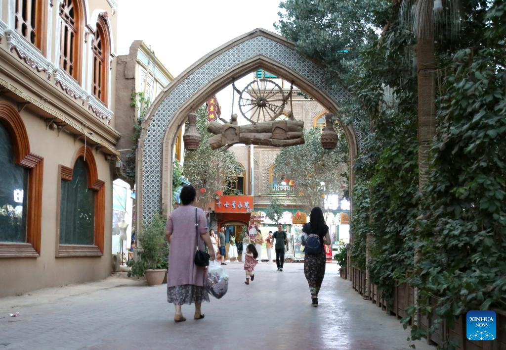 Tourists visit the Kashgar Ancient City scenic spot, northwest China's Xinjiang Uygur Autonomous Region, Sept. 10, 2025. The ancient city of Kashgar, located in southwestern Xinjiang, served as a vital transportation hub connecting China with Central Asia and South Asia in ancient times. The confluence of diverse ethnic cultures in this region has given rise to a wealth of historical and cultural treasures.