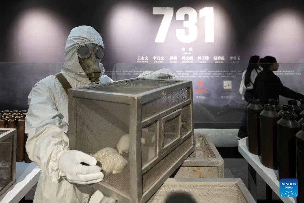 This photo shows a view at a special exhibition on the shooting process of Evil Unbound, a film about Unit 731, in Harbin, northeast China's Heilongjiang Province, Sept. 17, 2025.