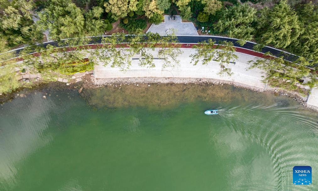 A drone photo taken on Sept. 17, 2025 shows a view of Baohu Lake national wetland park in Yinchuan, northwest China's Ningxia Hui Autonomous Region.