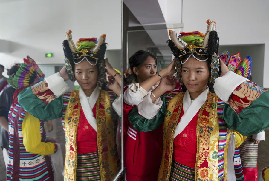 LHASA, Sept. 18 (Xinhua) -- Considered a living fossil of Tibetan culture, Tibetan opera blends talking, singing, acting, dancing and literature. It was included in the UNESCO Representative List of the Intangible Cultural Heritage of Humanity in 2009.