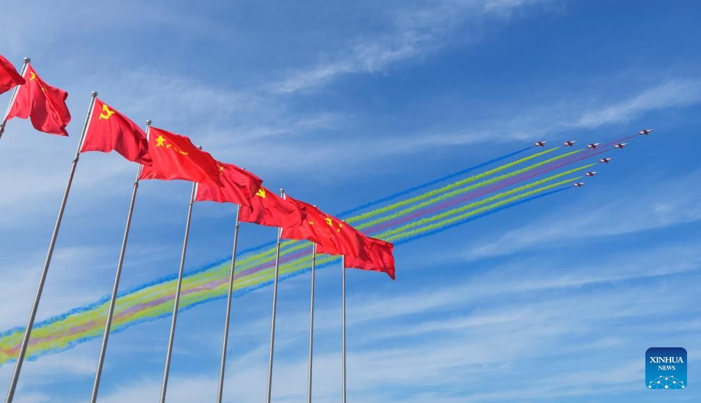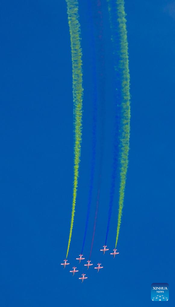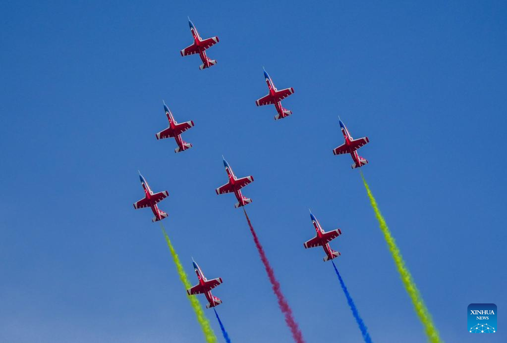 Aircraft of the Bayi Aerobatic Team of the Chinese People's Liberation Army Air Force perform during the 2025 aviation open-day activities of the Chinese People's Liberation Army Air Force and Changchun Air Show in Changchun, northeast China's Jilin Province, Sept. 19, 2025. The events kicked off here on Friday. (Xinhua/Tang Chengzhuo)