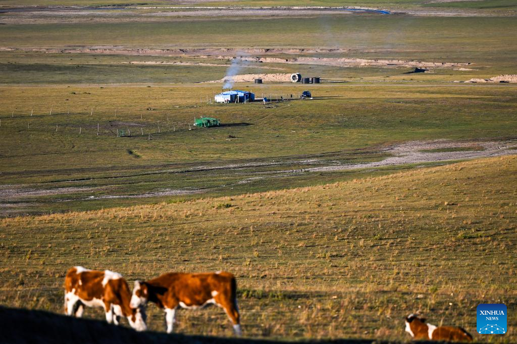 This photo taken on Sept. 19, 2025 shows the summer pasture where Duurengbulag's family has stayed in Baori Hushu Gacha of Gerquluu Sumu, Jarud Banner of Tongliao, north China's Inner Mongolia Autonomous Region. Every September, herders in Baori Hushu Gacha of Gerquluu Sumu in Jarud Banner drive their well-fed livestock from the summer pastures back to the winter pasture. (Xinhua/Lian Zhen)