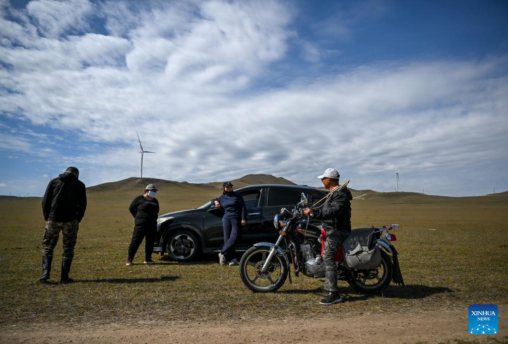 Duurengbulag looks at a neighbor's livestock at the summer pasture in Baori Hushu Gacha of Gerquluu Sumu, Jarud Banner of Tongliao, north China's Inner Mongolia Autonomous Region, Sept. 19, 2025. Every September, herders in Baori Hushu Gacha of Gerquluu Sumu in Jarud Banner drive their well-fed livestock from the summer pastures back to the winter pasture. (Xinhua/Lian Zhen)