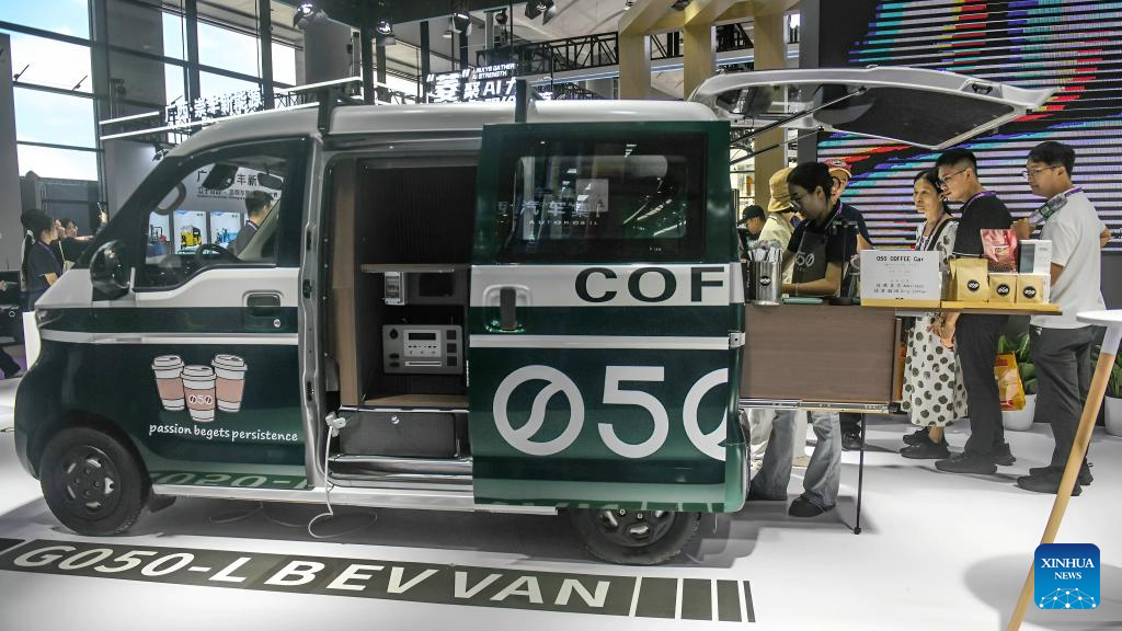 People view an electric vehicle produced in Liuzhou during the 22nd China-ASEAN Expo in Nanning, south China's Guangxi Zhuang Autonomous Region, Sept. 18, 2025. At the ongoing 22nd China-ASEAN Expo, new energy vehicles produced in Liuzhou of Guangxi and empowered by artificial intelligence draw wide attention from both domestic and overseas businesses and visitors. (Xinhua/Zhang Ailin)