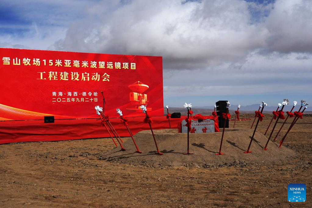 XINING, Sept. 20 (Xinhua) -- China on Saturday launched the construction of a new large astronomical observation project, the Xue-shan-mu-chang 15-meter SubMillimeter Telescope (XSMT).