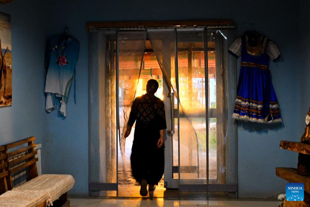 Ma Xiuhua welcomes guests at her agritainment in Tacheng City, northwest China's Xinjiang Uygur Autonomous Region, Sept. 17, 2025.(Xinhua/Xin Yuewei)