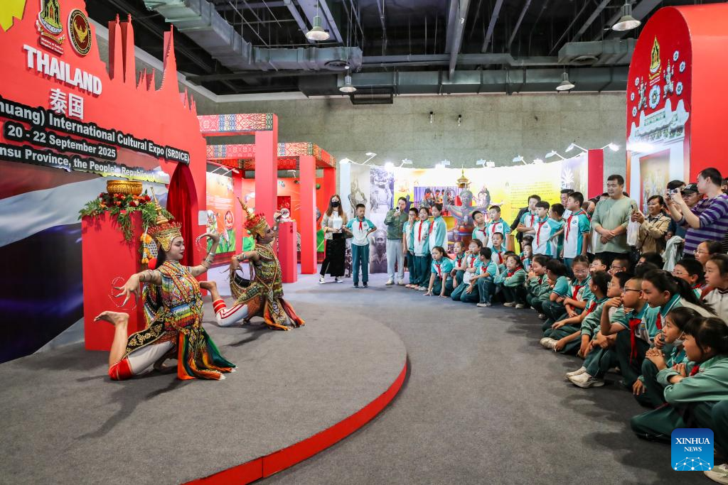 Students watch a performance during the 8th Silk Road (Dunhuang) International Cultural Expo in Dunhuang, northwest China's Gansu Province, Sept. 22, 2025. More than 1,200 representatives from 97 countries and eight international organizations have gathered at the 8th Silk Road (Dunhuang) International Cultural Expo, which kicked off on Sunday in Dunhuang, a key hub on the ancient Silk Road in northwest China. (Xinhua/Lang Bingbing)