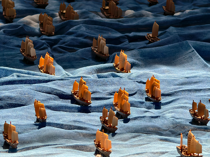 Photo shows miniature models of Zheng He's fleet by Fu Kunxiang. (Photo/Wang Li)