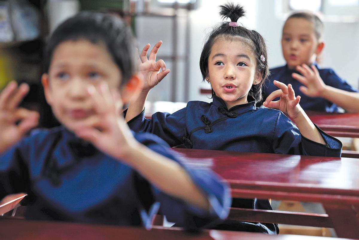 Children learn to sing the Song of the Twenty-Four Solar Termsduring a traditional Chinese culture class in Tianshan district, Urumqi, on Sept 8. ZHU XINGXIN/CHINA DAILY