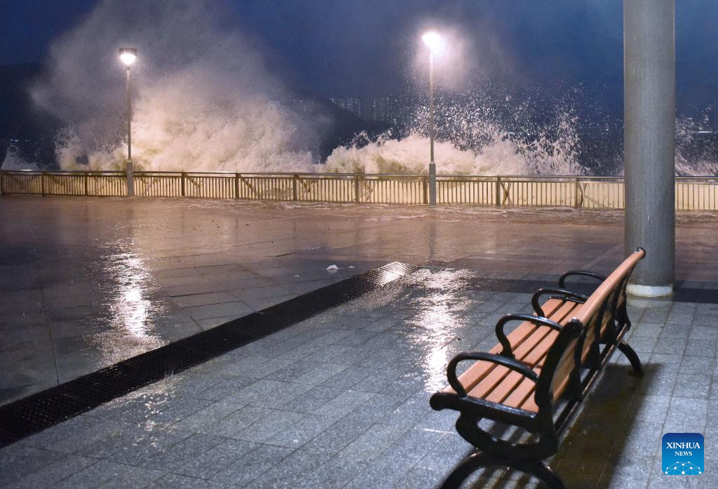 Waves crash against a coast in Hong Kong, south China, Sept. 23, 2025. (Xinhua/Chen Duo)