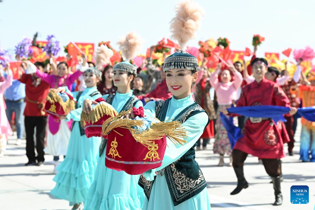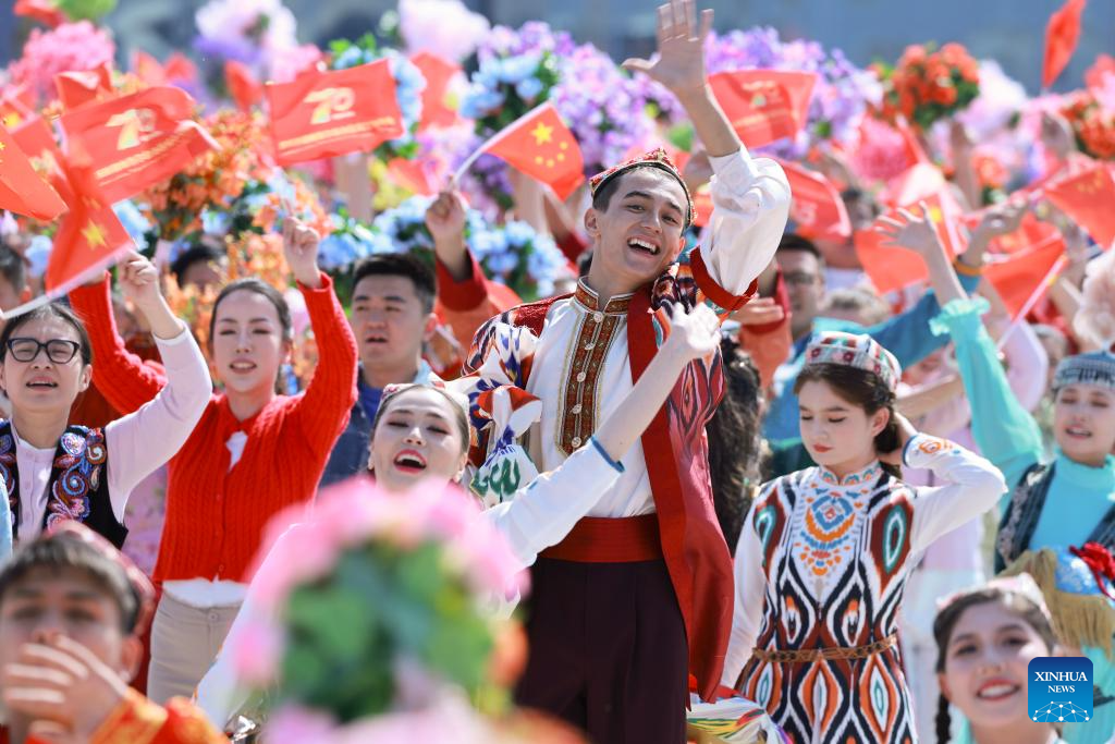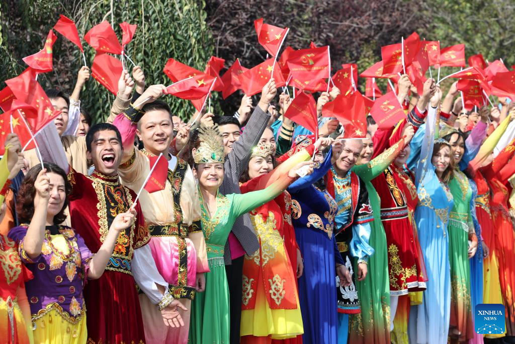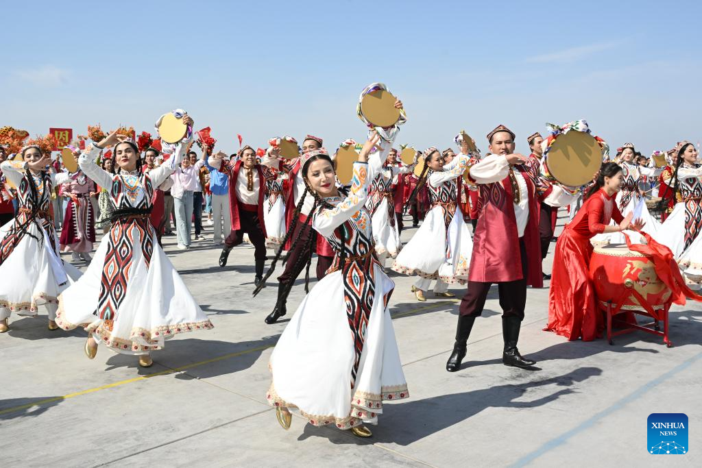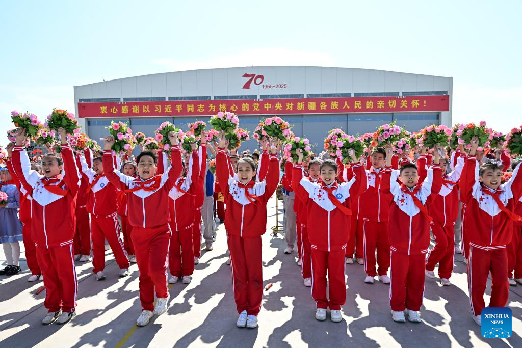 Chinese President Xi Jinping, also general secretary of the Communist Party of China Central Committee and chairman of the Central Military Commission, and the delegation receive a warm welcome from people of various ethnic groups at the Urumqi Tianshan International Airport and in Urumqi's city proper, northwest China's Xinjiang Uygur Autonomous Region, Sept. 23, 2025. Xi, who leads a central delegation, arrived in Urumqi, capital of Xinjiang Uygur Autonomous Region, on Tuesday to attend activities marking the region's 70th founding anniversary. (Xinhua/Yan Yan)