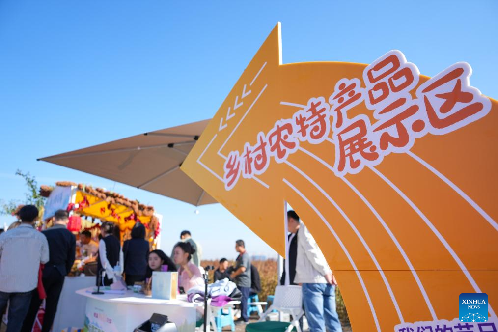Visitors tour the rural specialty agricultural products exhibition area during the Chinese farmers' harvest festival celebrations in Huanan County, Jiamusi City, northeast China's Heilongjiang Province, Sept. 23, 2025. The Chinese farmers' harvest festival is the first national festival created specifically for the country's farmers. Starting in 2018, the festival coincides with the Autumnal Equinox each year, which is one of the 24 solar terms of the Chinese lunisolar calendar and usually falls between Sept. 22 and 24 during the country's agricultural harvest season. (Xinhua/Wang Jianwei)