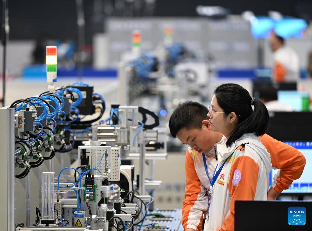 This photo shows a scene of the third Vocational Skills Competition in Zhengzhou, central China's Henan Province, Sept. 20, 2025. (Xinhua/Li Jianan)