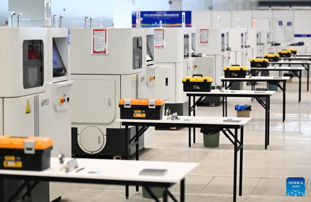 3D printers are seen in an additive manufacturing event during the third Vocational Skills Competition in Zhengzhou, central China's Henan Province, Sept. 21, 2025. (Xinhua/Li Jianan)
