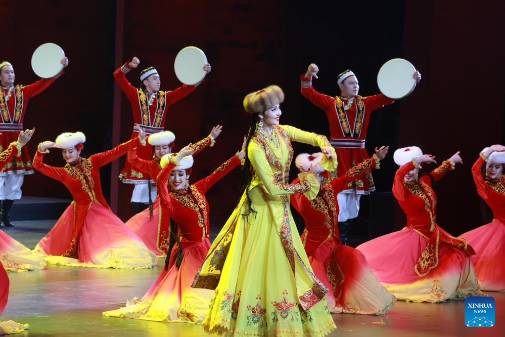 A gala entitled "Beautiful Xinjiang" is held to mark the 70th founding anniversary of Xinjiang Uygur Autonomous Region in Urumqi, the regional capital, Sept. 24, 2025. (Xinhua/Ding Lin)