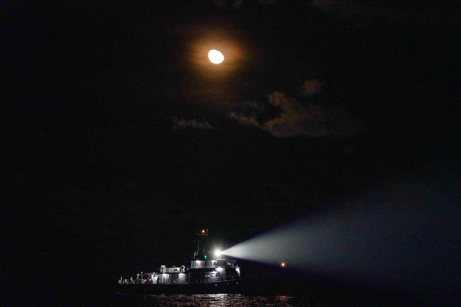 China Coast Guard vessel Dahe sails under the moonlight in the South China Sea, on Sept. 11, 2025. (Xinhua/Xu Hongyan)