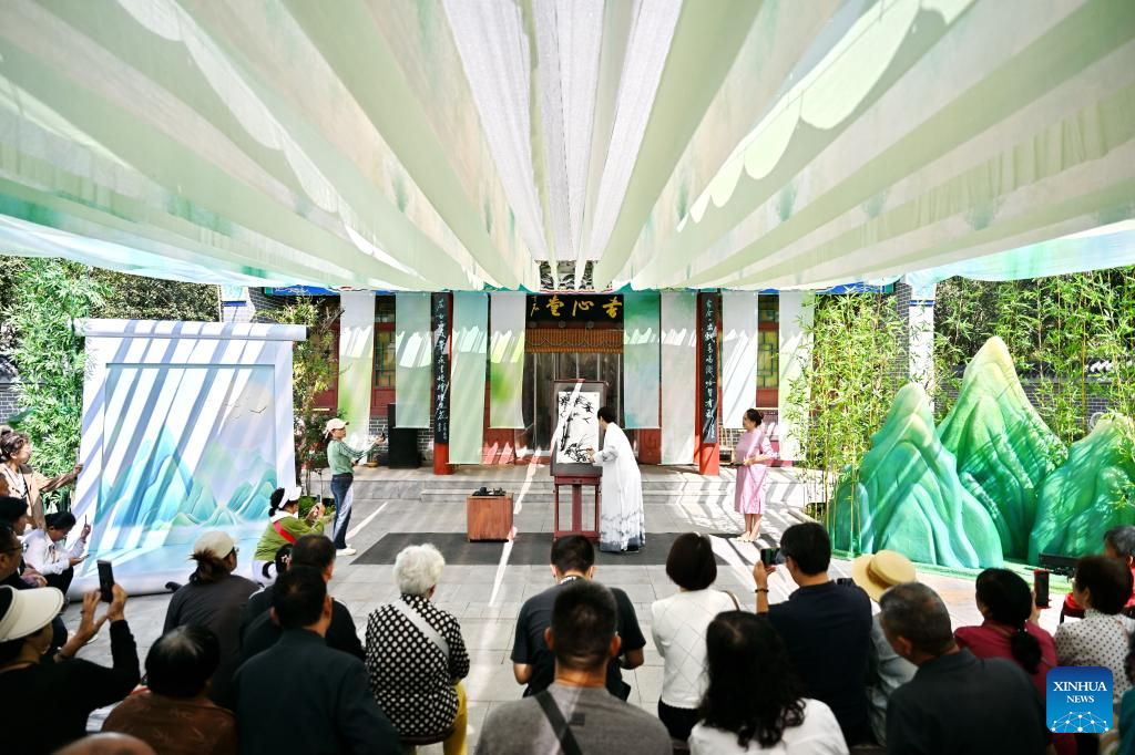 Tourists watch a performance at Wuqiao Acrobatics World in Wuqiao County of Cangzhou, north China's Hebei Province, Sept. 25, 2025. Wuqiao Acrobatics World, an acrobatics themed park, is a bustling folklore attraction and multi-functional complex combining services including entertainment, cultural experiences, exhibitions, training, competitions and cultural exchanges. (Xinhua/Mu Yu)