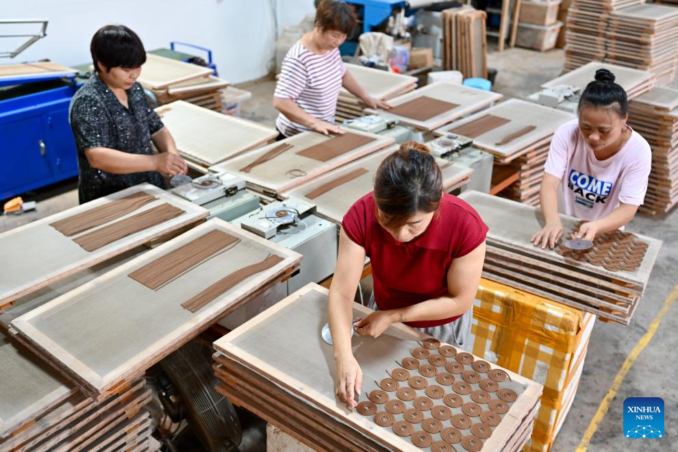 Staff members of an incense-making enterprise make incense sticks in Laidian Town, Xianyou County of southeast China's Fujian Province, on Sept. 24, 2025. Xianyou County is a significant trading and distribution center for agarwood and sandalwood in China. In recent years, the county has been working on the development of its incense-related business by leveraging the abundance in raw materials, a mature incense-making industrial chain, and online and offline sales networks there. (Xinhua/Jiang Kehong)
