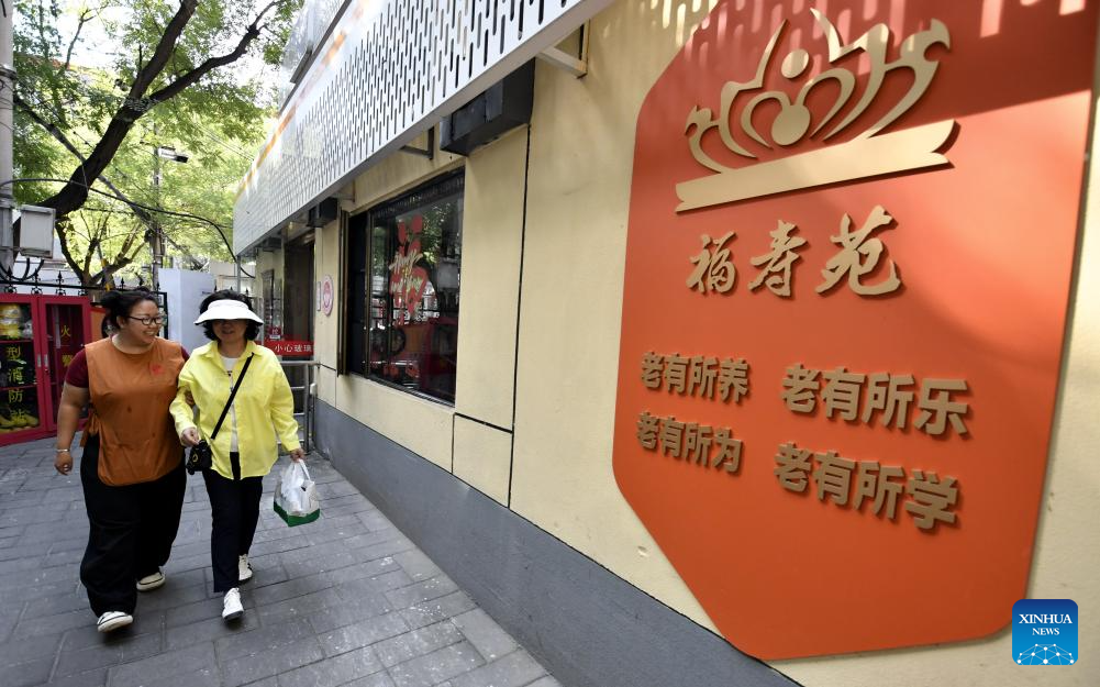Residents walk to a senior community canteen to buy lunch in Xiangheyuan Neighborhood, Chaoyang District, Beijing, capital of China, Sept. 26, 2025. In recent years, Xiangheyuan Neighborhood of Chaoyang District has been actively developing a senior-friendly meal service network to meet the dietary needs of its elderly residents. The neighborhood has built two central kitchens and seven senior community canteens. Additionally, it has established a special meal delivery system for the elderly jointly with online platforms, ensuring that the elderly residents here can enjoy healthy and delicious meals. (Xinhua/Li Xin)