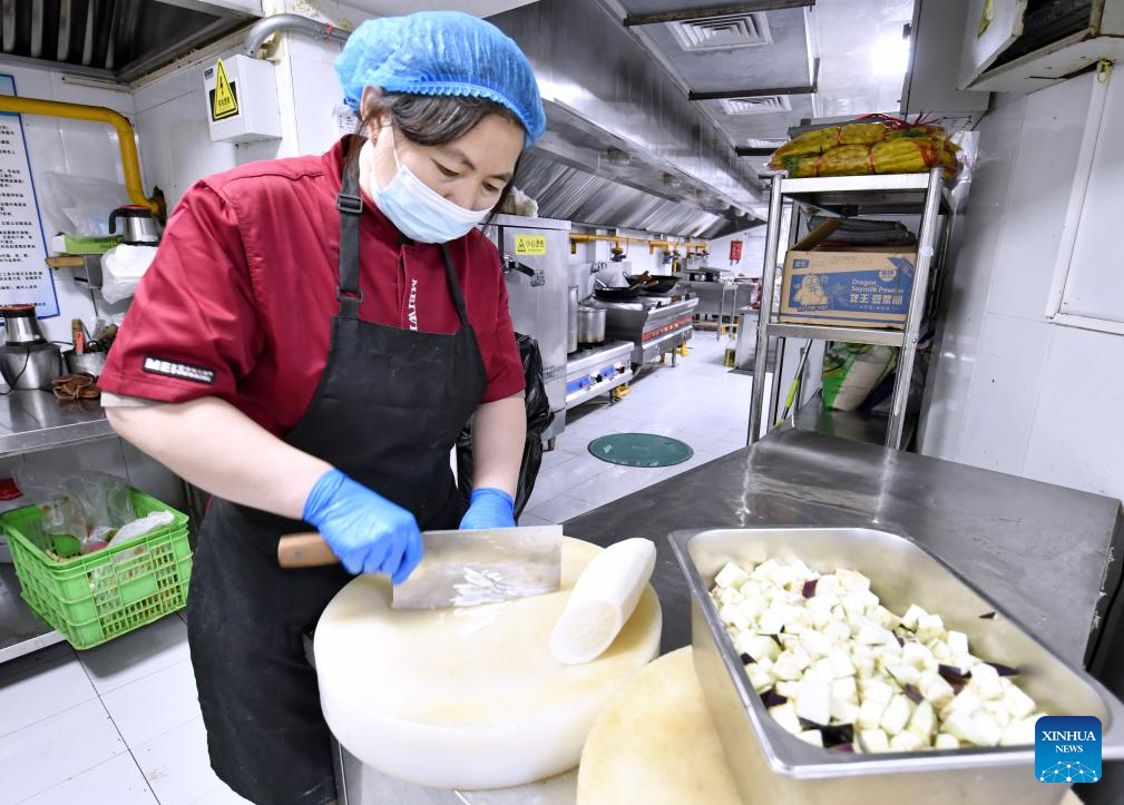 A chef prepares lunch for senior residents at a central kitchen in Xiangheyuan Neighborhood, Chaoyang District, Beijing, capital of China, Sept. 26, 2025. In recent years, Xiangheyuan Neighborhood of Chaoyang District has been actively developing a senior-friendly meal service network to meet the dietary needs of its elderly residents. The neighborhood has built two central kitchens and seven senior community canteens. Additionally, it has established a special meal delivery system for the elderly jointly with online platforms, ensuring that the elderly residents here can enjoy healthy and delicious meals. (Xinhua/Li Xin)