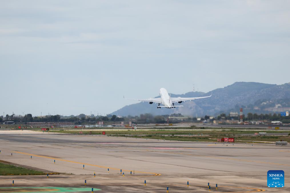A passenger aircraft of China Eastern Airlines carrying out the inaugural flight from Barcelona to Shanghai takes off from El Prat airport in Barcelona, Spain, Sept. 26, 2025. China Eastern Airlines' newly-launched direct route between China's Shanghai and Spain's Barcelona made its inaugural flight on Friday, strengthening air connectivity between the two countries. (Photo by Joan Gosa/Xinhua)