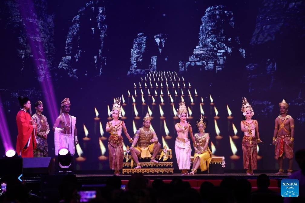 Cambodian artists perform at the 2025 China-Cambodia mid-autumn festival friendship gala in Phnom Penh, Cambodia on Sept. 28, 2025. The gala held here on Sunday evening attracted hundreds of revelers. (Photo by Nitola/Xinhua)