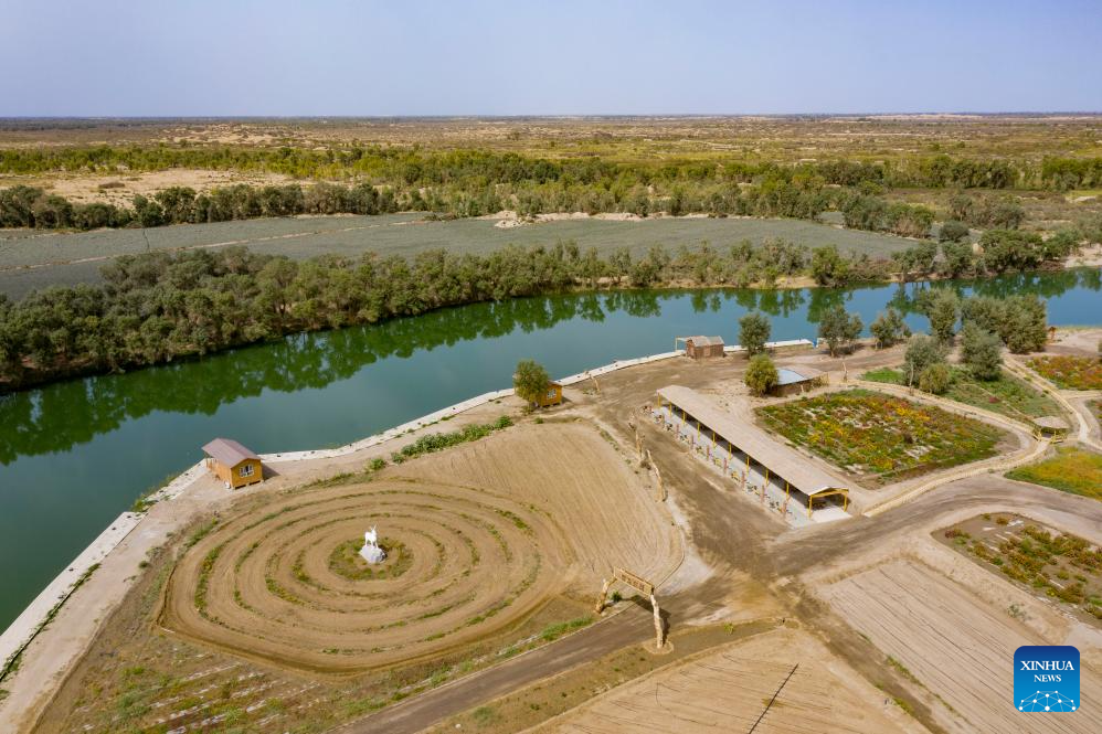 An aerial drone photo shows a manor resort in Karquga Township of Yuli County, Mongolian Autonomous Prefecture of Bayingolin, northwest China's Xinjiang Uygur Autonomous Region, Sept. 20, 2025. (Xinhua/Chen Shuo)