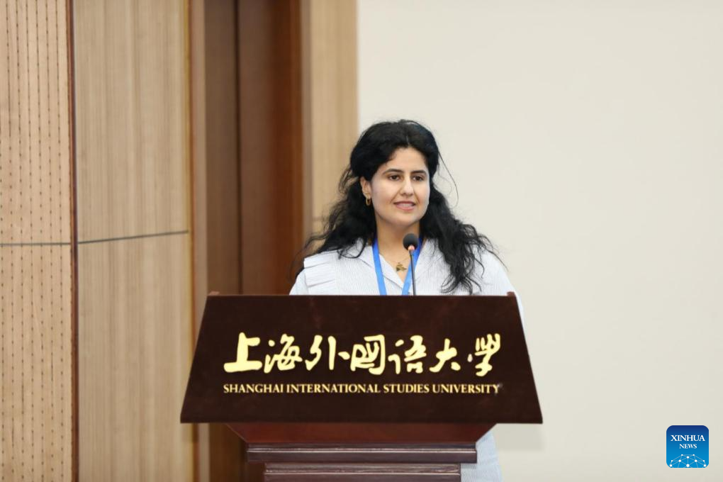 Sheikha Al-Anoud Al-Ibrahim Al-Duaij Al-Sabah, chairwoman of the Kuwait-China Friendship Club, attends an exchange activity in Shanghai, east China, Sept. 27, 2025. (Xinhua)