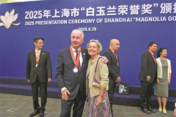The Shanghai Municipal Government confers the 2025 Magnolia Gold Award on 28 foreign nationals and the Honorary Citizen of Shanghai on two expatriates on Sept 29. [Photo by Gao Erqiang/China Daily]