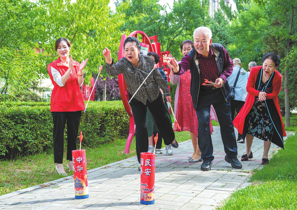 Seniors play touhu, or arrow throwing, in a park located at a center for home and community-based eldercare services in Hohhot, the capital of the Inner Mongolia autonomous region, on Sept 11. (DING GENHOU/FOR CHINA DAILY)