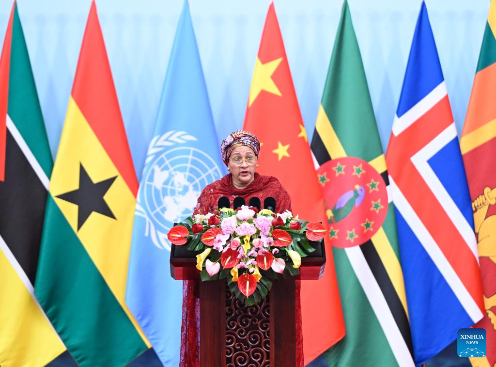 UN Deputy Secretary-General Amina Mohammed delivers a speech at the opening ceremony of the Global Leaders' Meeting on Women in Beijing, capital of China, Oct. 13, 2025. (Xinhua/Shen Hong)