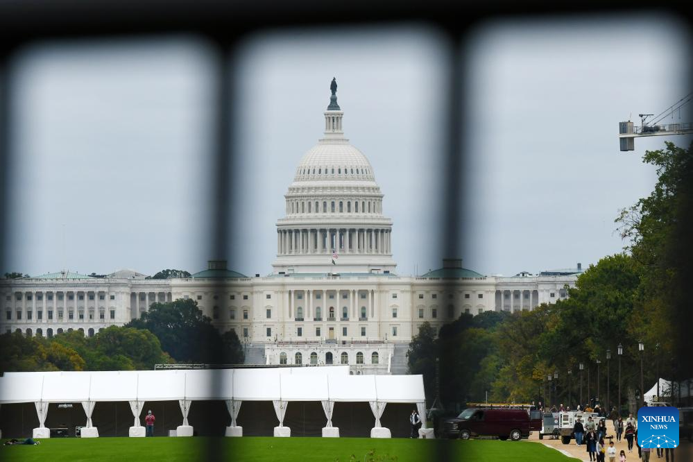 This photo taken on Oct. 12, 2025 shows the U.S. Capitol building in Washington, D.C., the United States. The federal government shutdown entered its 12th day. (Xinhua/Li Rui)