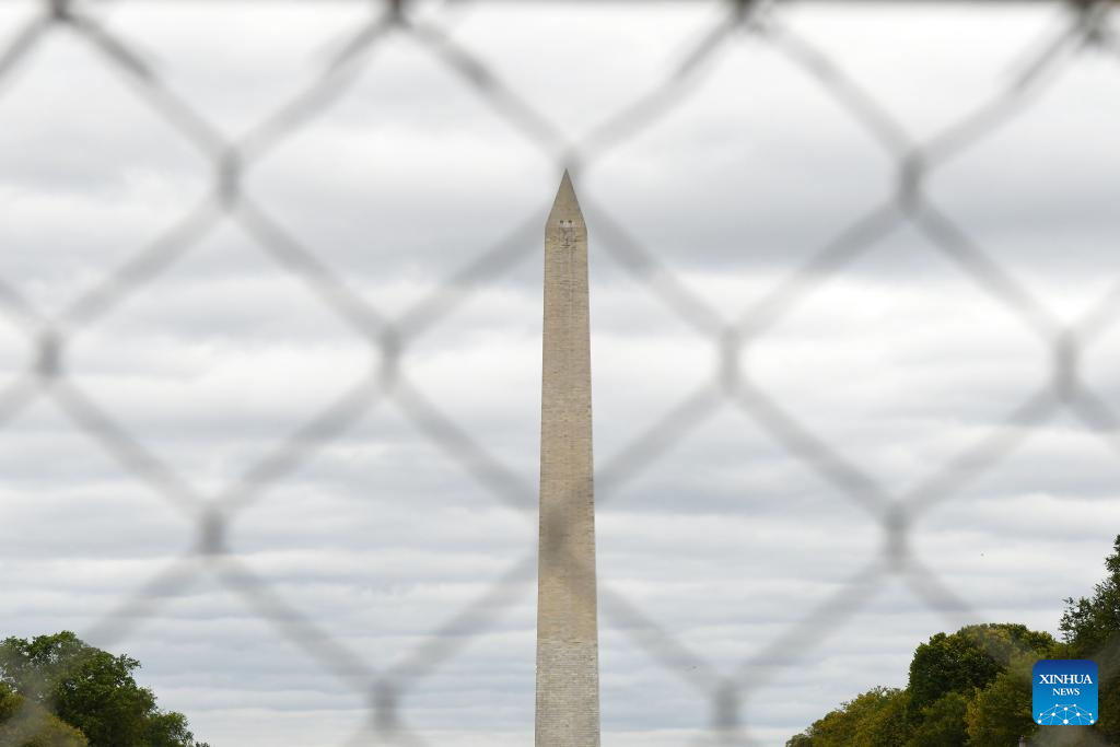 This photo taken on Oct. 12, 2025 shows the Washington Monument in Washington, D.C., the United States. The federal government shutdown entered its 12th day. (Xinhua/Li Rui)