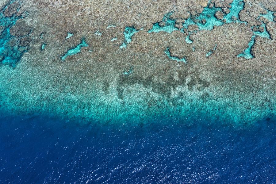 An aerial drone photo taken on Oct. 2, 2025 shows a view of the China's Huangyan Dao national nature reserve in the South China Sea. (Xinhua)