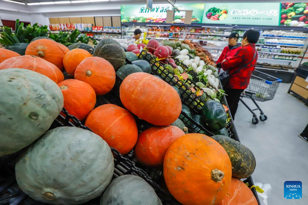 Customers select vegetable at a supermarket in Tangshan City, north China's Hebei Province, Oct. 15, 2025.(Photo by Liu Mancang/Xinhua)