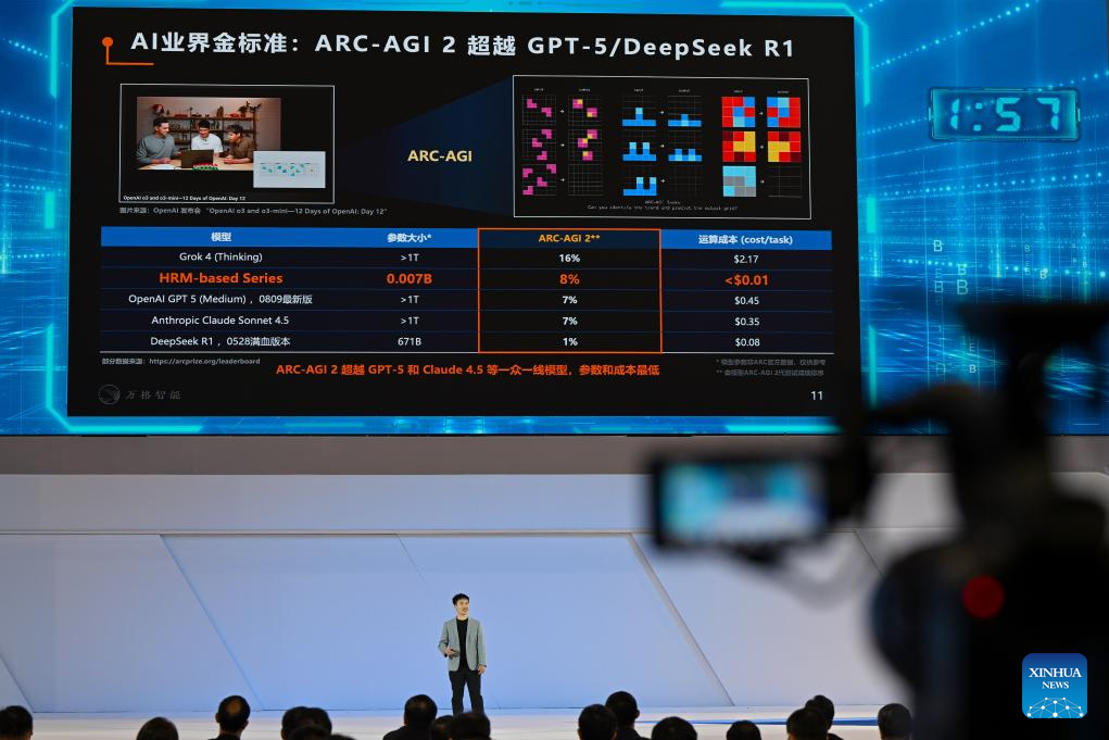 A contestant introduces the project of Oxford University during the final of the China International College Students' Innovation Competition 2025 in Zhengzhou, central China's Henan Province, Oct. 15, 2025. Six teams from domestic and international colleges took part in the final of the competition here on Wednesday. (Xinhua/Hao Yuan)
