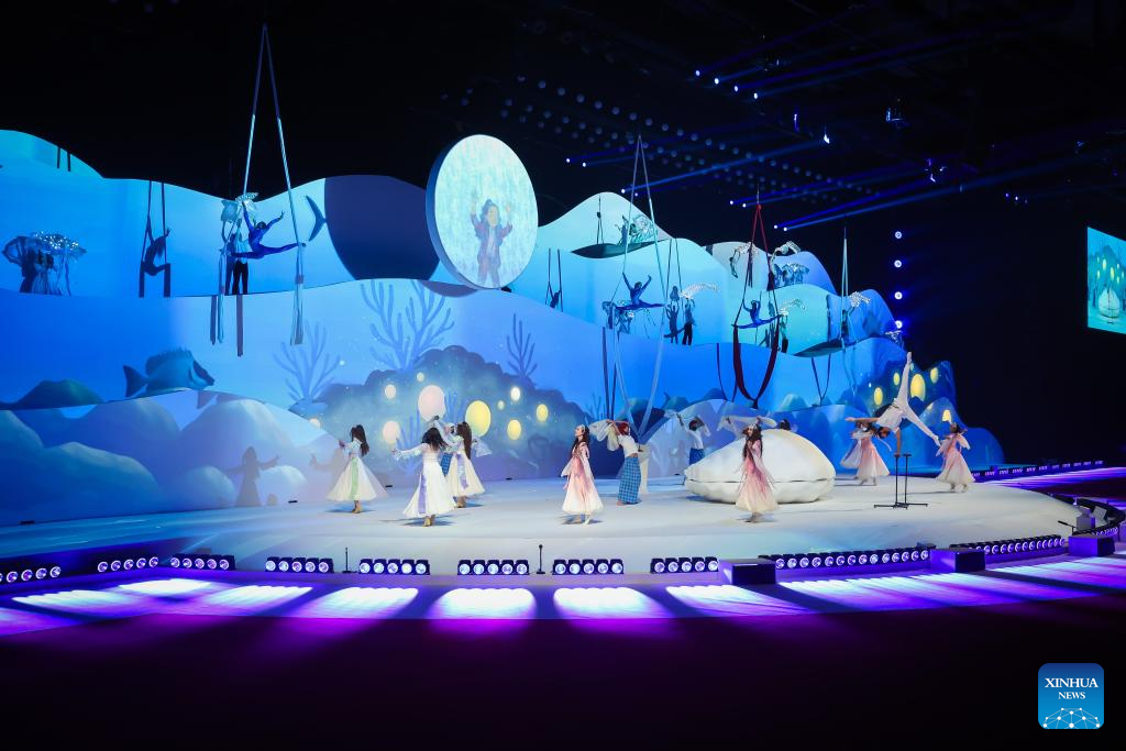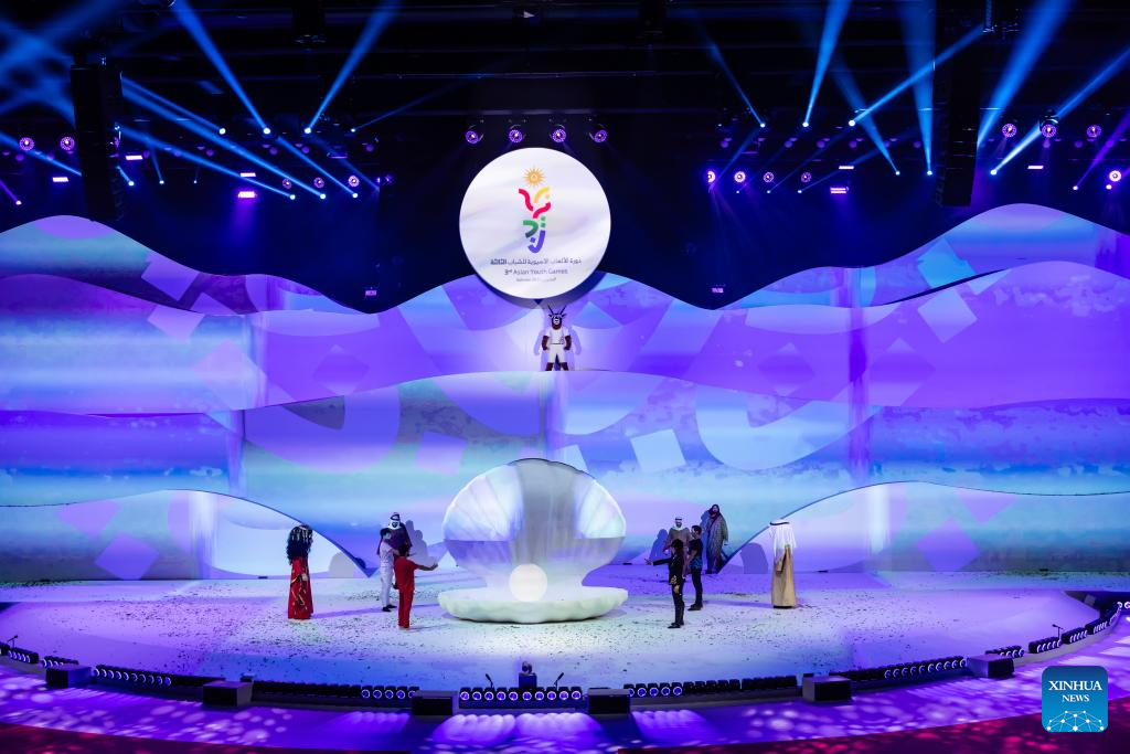 Artists perform during the opening ceremony of the 3rd Asian Youth Games at Exhibition World Bahrain in Sakhir, Bahrain, Oct. 22, 2025. (Bahrain Asian Youth Games Organizing Committee/Handout via Xinhua)