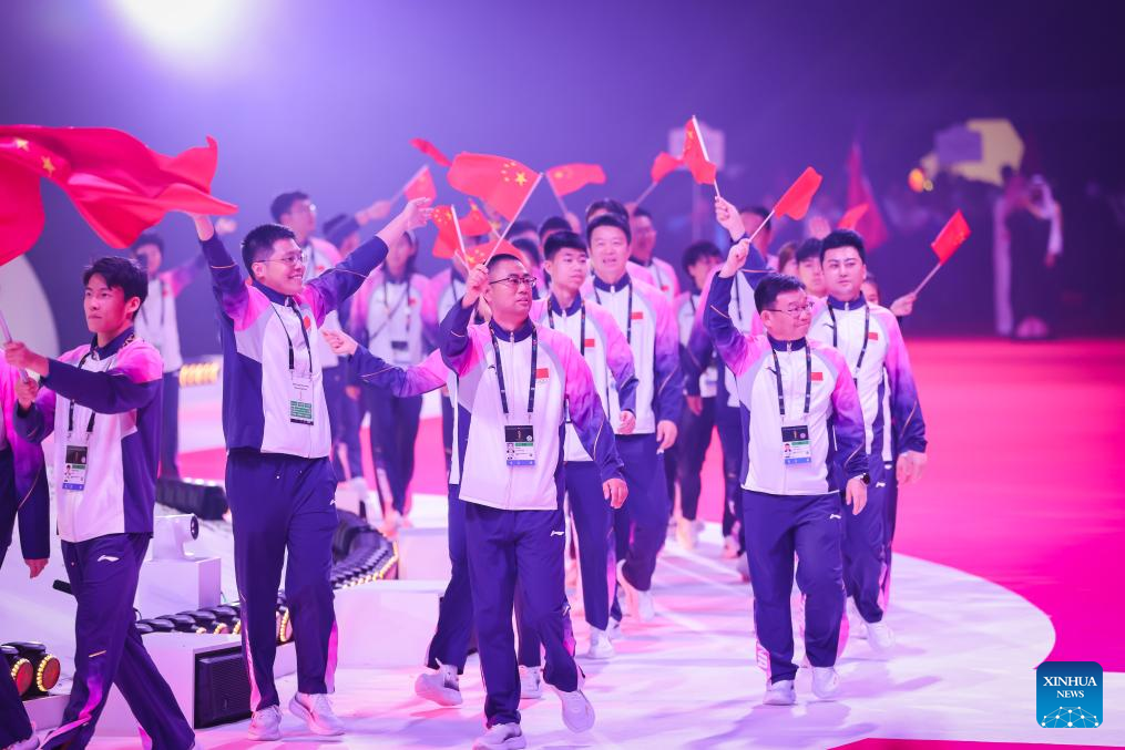 Team China has sent a 435-member delegation, including 293 athletes (148 women and 145 men), who will compete in 20 sports and 191 events, including athletics, swimming, 3x3 basketball and boxing. Taekwondo athlete Wang Wenjun and handball player Zhu Yifan served as the flag bearers for Team China at the opening ceremony.