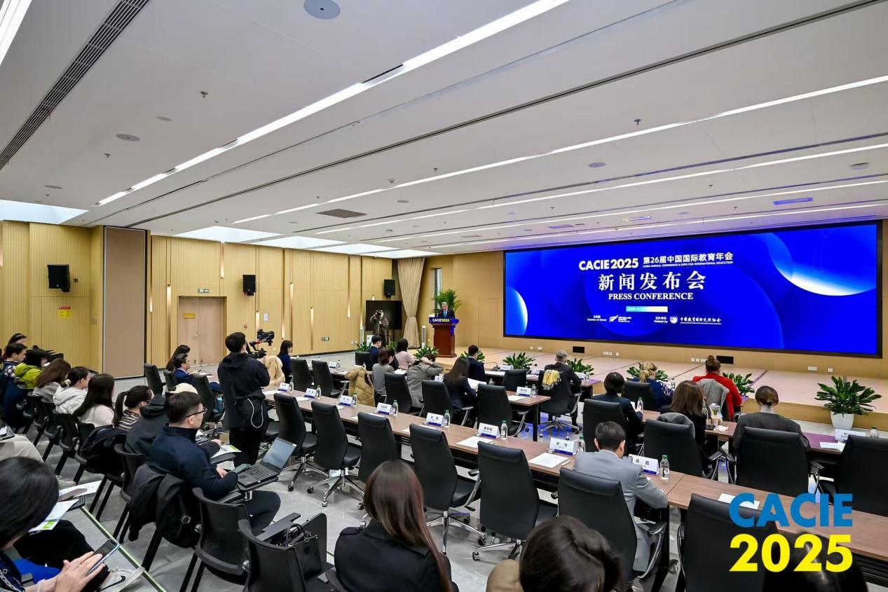 A press conference for the 2025 China Annual Conference and Expo for International Education (CACIE) was held in Beijing on Oct. 23, 2025, with nearly 80 guests and media representatives in attendance.