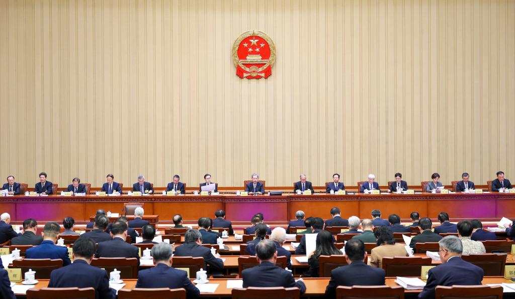 Zhao Leji, chairman of the National People's Congress (NPC) Standing Committee, presides over the 52nd meeting of the Council of Chairpersons of the 14th NPC Standing Committee at the Great Hall of the People in Beijing, capital of China, Oct. 24, 2025. (Xinhua/Liu Bin)